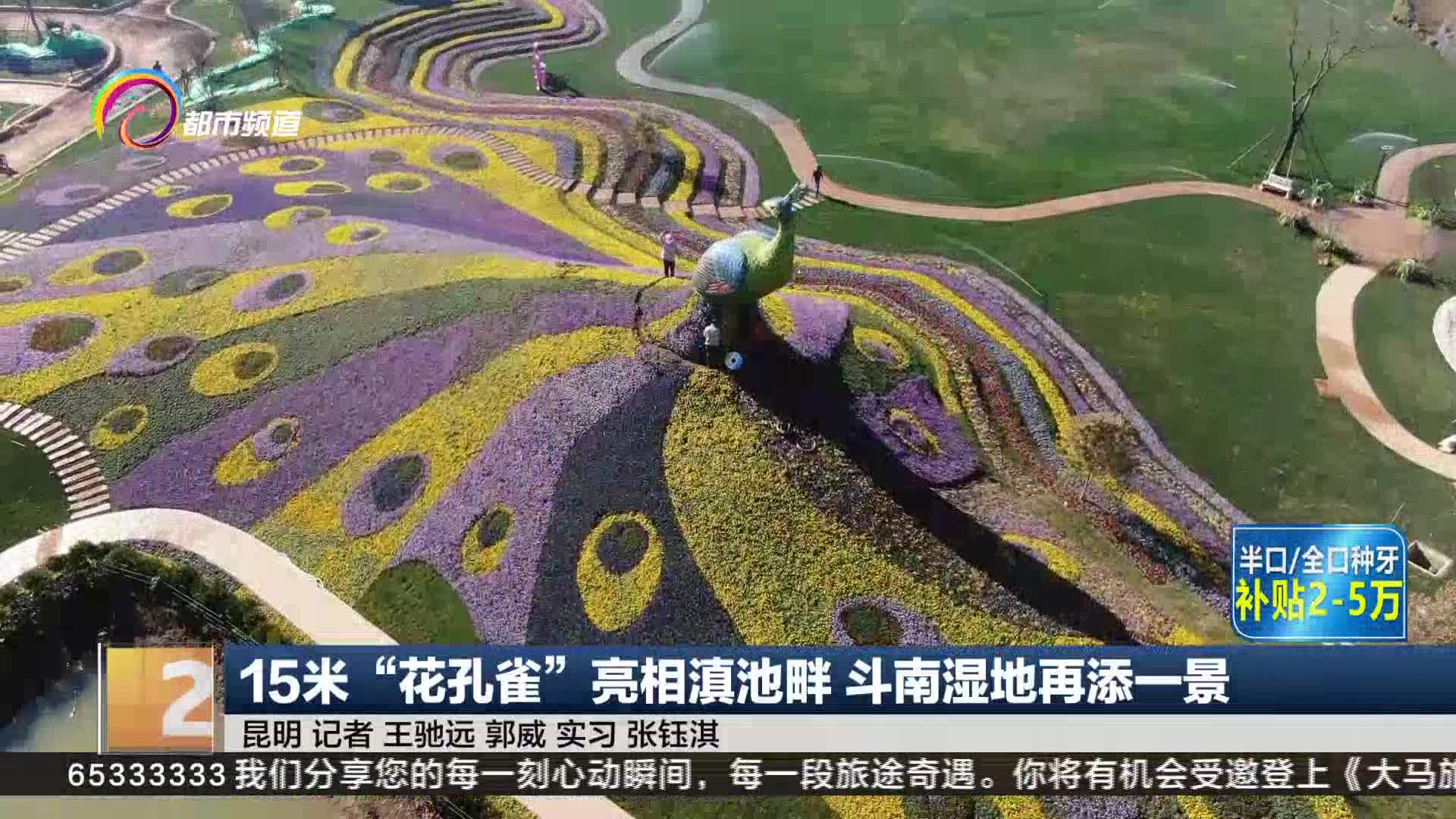 15米“花孔雀”亮相滇池畔 斗南湿地再添一景