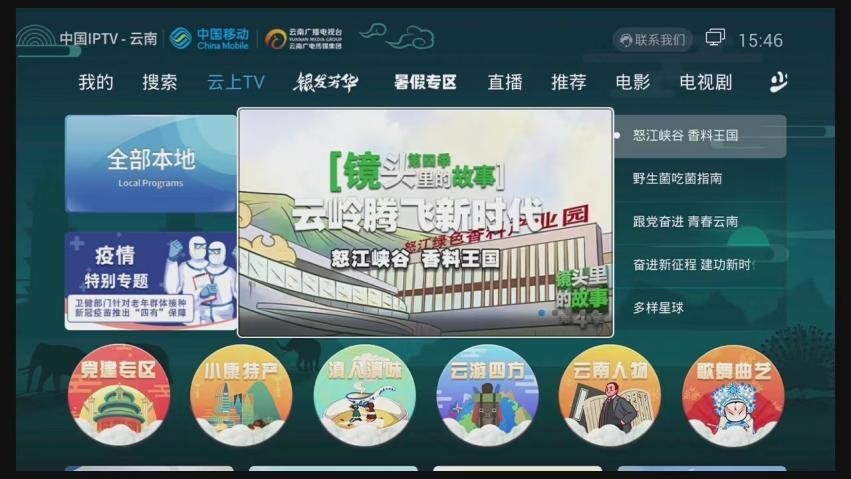 云南移动IPTV首页首屏呈现“云岭腾飞新时代”直播视频