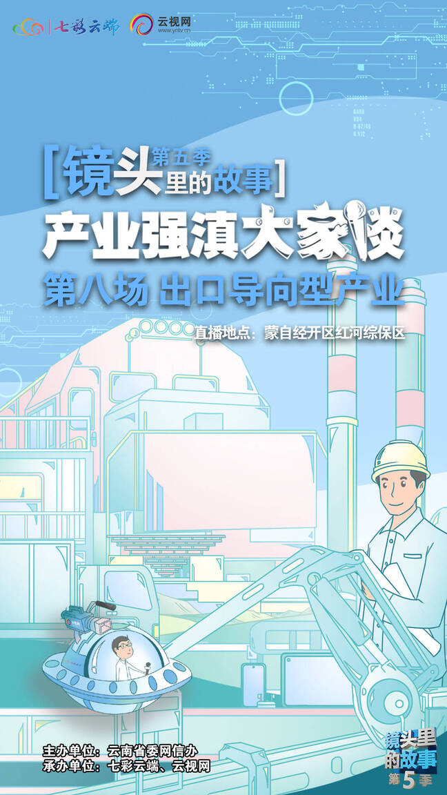 8月24日上午9:30,《镜头里的故事·产业强滇大家谈》大型主题系列直播活动第八场将走进蒙自经济技术开发区红河综合保税区,了解出口导向型产业的发展。敬请关注!