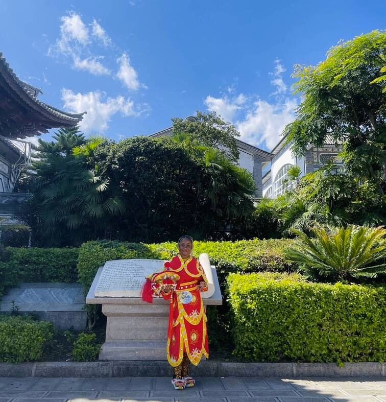 နိုင်ဂျီးရီးယားမှ Shuyao သည် တာလီမြို့ နံပါတ် 1 အလယ်တန်းကျောင်း၏ တရုတ်ဥယျာဉ်ဗိသုကာလက်ရာကို ကြည့်ပြီး အံ့ဩသွားခဲ့သည် Liuhe တံခါးတွင် ထွင်းထုထားသော ပန်းများ၊ အပင်များနှင့် တိရစ္ဆာန်များကို ထိတွေ့လိုက်ခြင်းဖြင့် သူမသည် တရုတ်ယဉ်ကျေးမှု၏ "ထူးခြားမှု" ကို ကိုယ်တိုင်ကိုယ်ကျ သူခံစားမိလိုက်ရသည်။