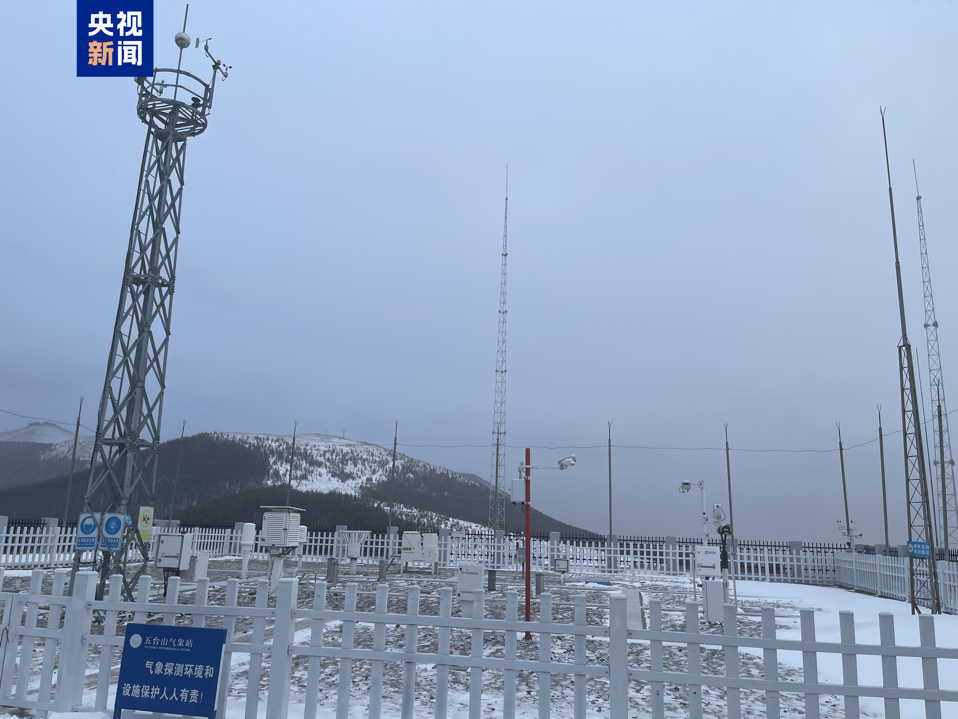 五台山气象站最早建在海拔近3000米的中台顶,1998年搬到海拔低了几百米的南台顶,是国家一类高山艰苦气象站。一年中,气象站所在地8级以上大风和积雪天气长达200多天。