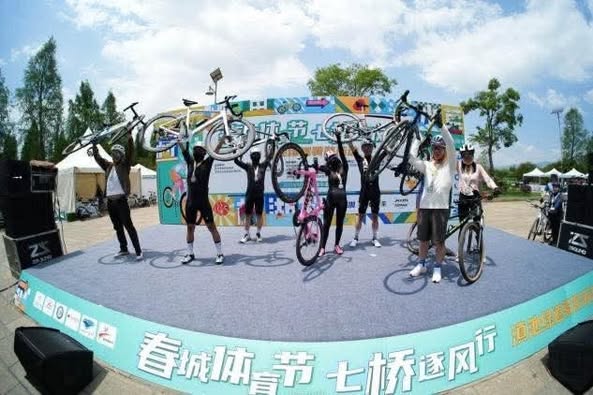The first "Seven Bridges Chasing the Wind" Dianchi Greenway Cycling Tour was launched in Kunming. 300 enthusiasts rode 28 kilometers and checked in at three landmarks along the way: the Water Bridge, the Grass Bridge, and the Forest Bridge. The cycling team shuttled between the Dianchi wetlands and archaeological sites, vividly demonstrating what it means to "ride in the scenery".