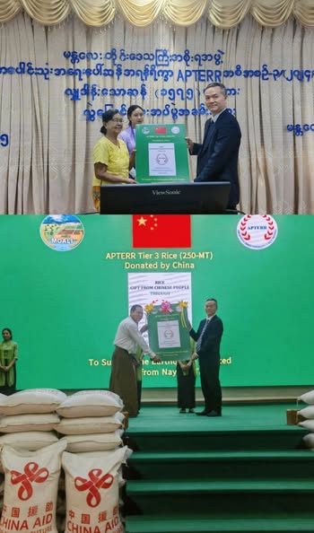 APTERR အရ မြန်မာနိုင်ငံငလျင်ဒဏ်ခံရဒေသများသို့ အရေးပေါ်ဆန်အကူအညီပေးခဲ့ပြီး မတ်လမှစတင်၍ စုစုပေါင်း ၁.၁ ဘီလီယံ RMB တန်ဖိုးရှိ အကူအညီများထဲမှ တစ်စိတ်တစ်ပိုင်းဖြစ်သည်။
