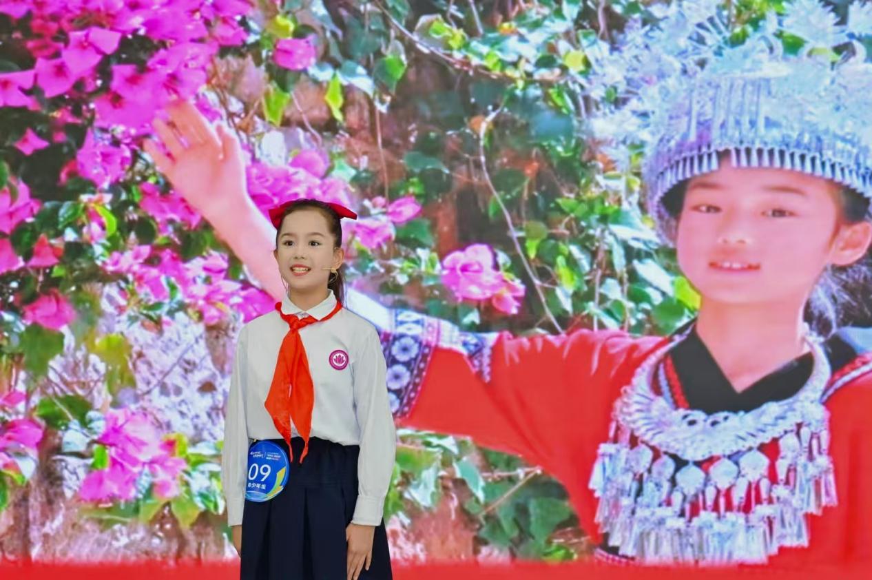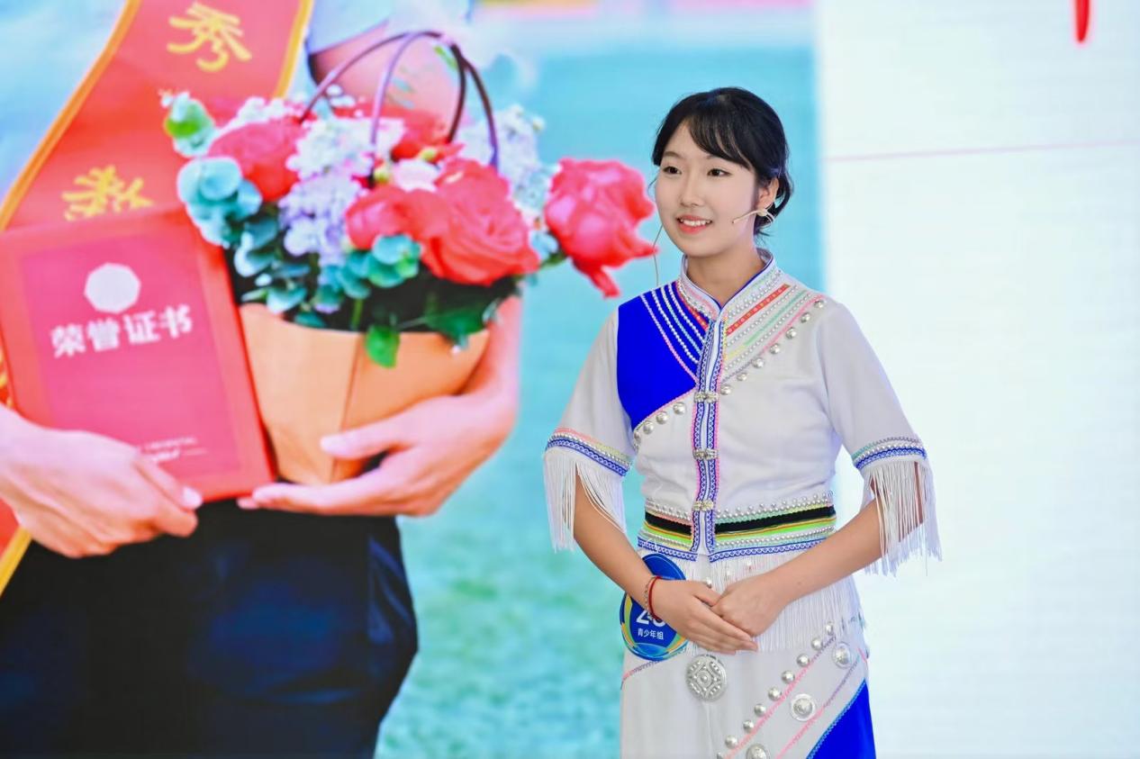 青少年组马晗讲述了与边境小学苗族姑娘小悦“手拉手”的故事。通过书信往来、视频互动,马晗与小悦结下深厚友谊,还创编苗族舞蹈《边疆咪采心向党》。展现边境护边员的坚守,以及红领巾少年们跨越山海的情谊和对祖国的热爱。