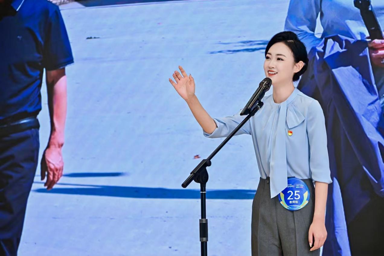 临沧市第二中学贺贵雨萱讲述了幼儿园教师周红作为双胞胎母亲、“时代楷模”鲍卫忠的妻子,她一人扛起家庭与工作重担,既是三尺讲台上传道授业的燃灯者,悉心照顾幼儿,也是风雨中为孩子遮风挡雨的擎伞人,更是英模精神的传承者。