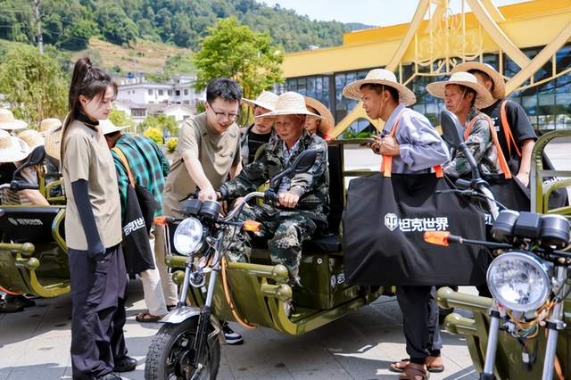 图1:坦克世界玩家代表向当地果农演示三轮车使用方法