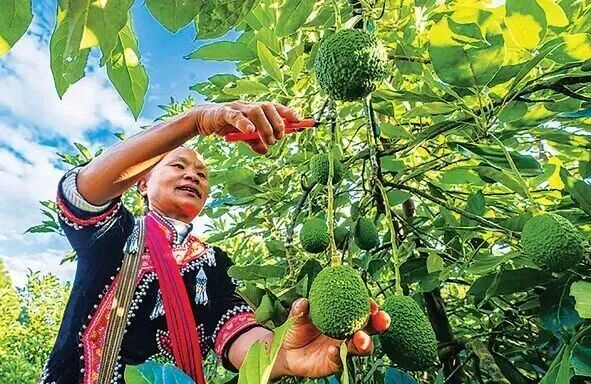 孟连牛油果产业“334”利益分配机制,形成公司盈利、农户增收、村集体经济壮大的联农带农“三赢”局面。图源:新华社
