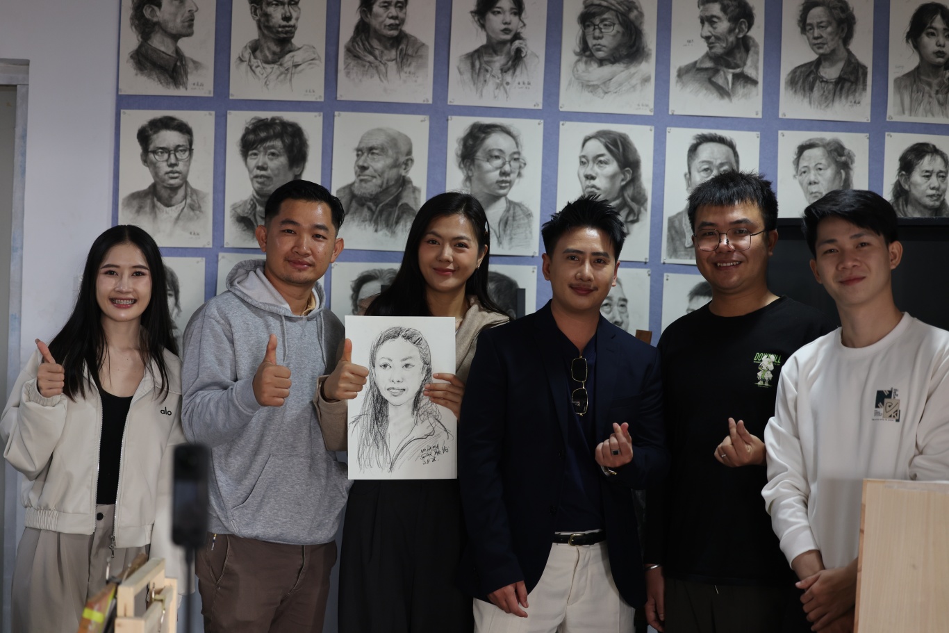 12月5日上午,达人团再次来到画家岩温叫的工作室,深入了解曼勒村壁画创作背后的乡土故事与创作历程,岩温叫现场为Non博主创作了一幅十分钟素描画像,生动勾勒出人物神韵,让博主直呼“太喜欢了”。