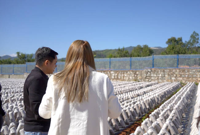 品尝美食是了解文化的窗口,而深入产业一线则能触摸发展的脉搏。SeinPhyo和Yi来到陇把镇的香菇基地,仿佛闯入一个“蘑菇种植的王国”。整齐排列的菌包上,香菇、猴头菇等破棒而出,生机勃勃。