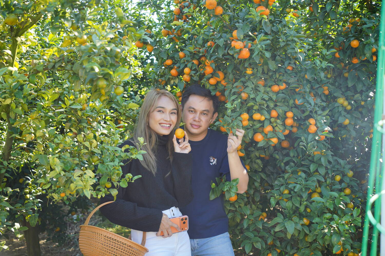 在砂糖橘种植园,夫妇俩亲手体验采摘的乐趣,金黄的果实映照着笑容,他们迫不及待地通过镜头与缅甸的粉丝分享这份收获的喜悦。