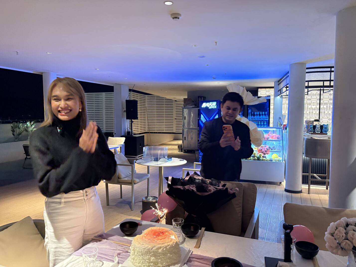 行程紧凑的一天,在惊喜与感动中落下帷幕。恰逢博主Yi的生日,原以为会在异国的忙碌中平淡度过,然而当她深夜返回酒店,电梯门打开的瞬间——云南广播电视台摄制团队手捧蛋糕与鲜花忽然出现,为她送上浓浓祝福。更让人动容的是,一些在瑞丽工作的缅甸粉丝也特意赶来,陪她共度这个特别的生日。