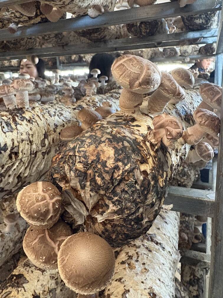 Yi感慨道:“在缅甸有句俗语,‘找到菌子的脸就很开心’,意思是运气好。看到这么多可爱的香菇,我运气很好!”更令他们惊奇的是这些菌包的来源。原来,陇把镇大力发展蚕桑产业,每年修剪产生大量桑枝。过去,桑枝多被当作柴火,如今通过技术创新,被打碎制成菌包,用于培育食用菌。待种植结束后,废弃菌包又可作为有机肥还田,形成“桑—蚕—菌—肥”的绿色循环产业链。