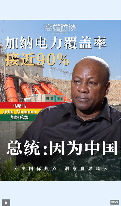 马哈马表示,中国在非洲基础设施发展进程中发挥了关键作用。在其他地区,中国企业修建了连通加纳城市的铁路,并且为加纳的农村电气化项目提供了资金支持。正因为中国的支持,如今加纳电力覆盖率接近90%,跻身非洲电力覆盖率最高国家之列。
