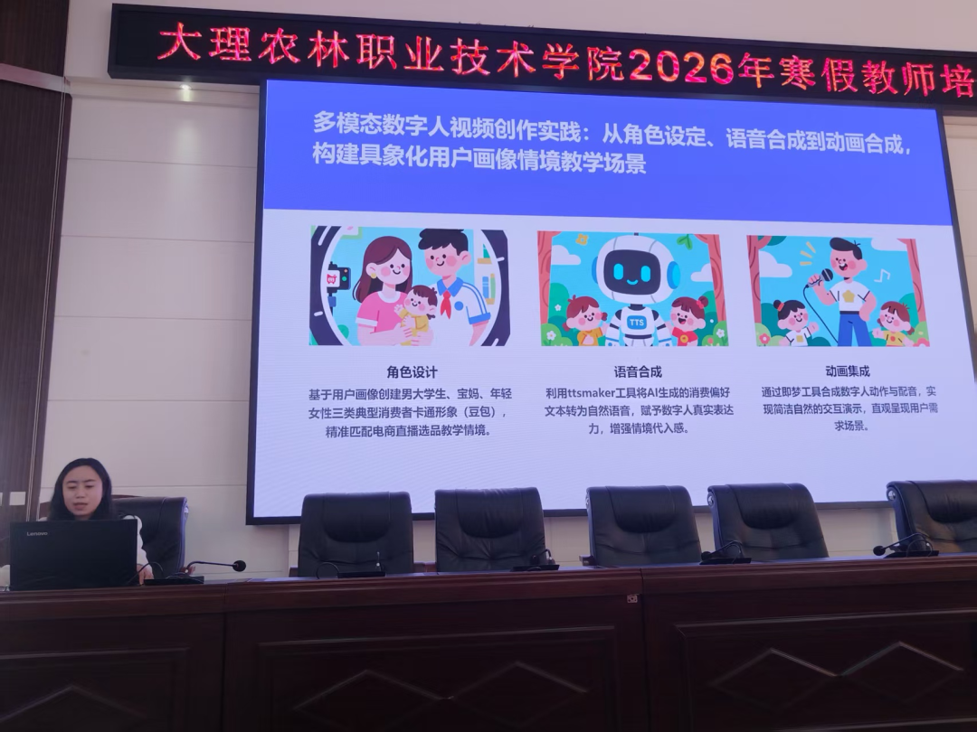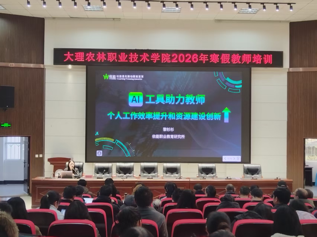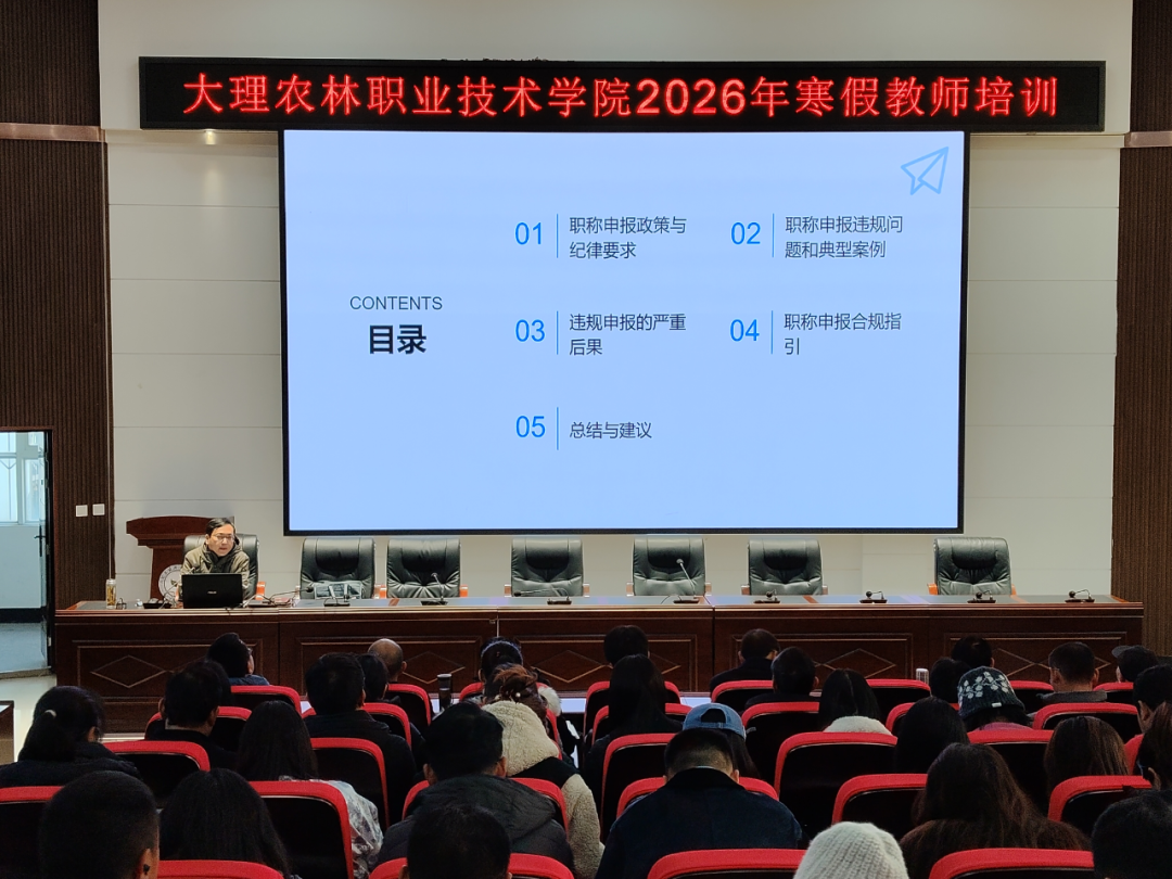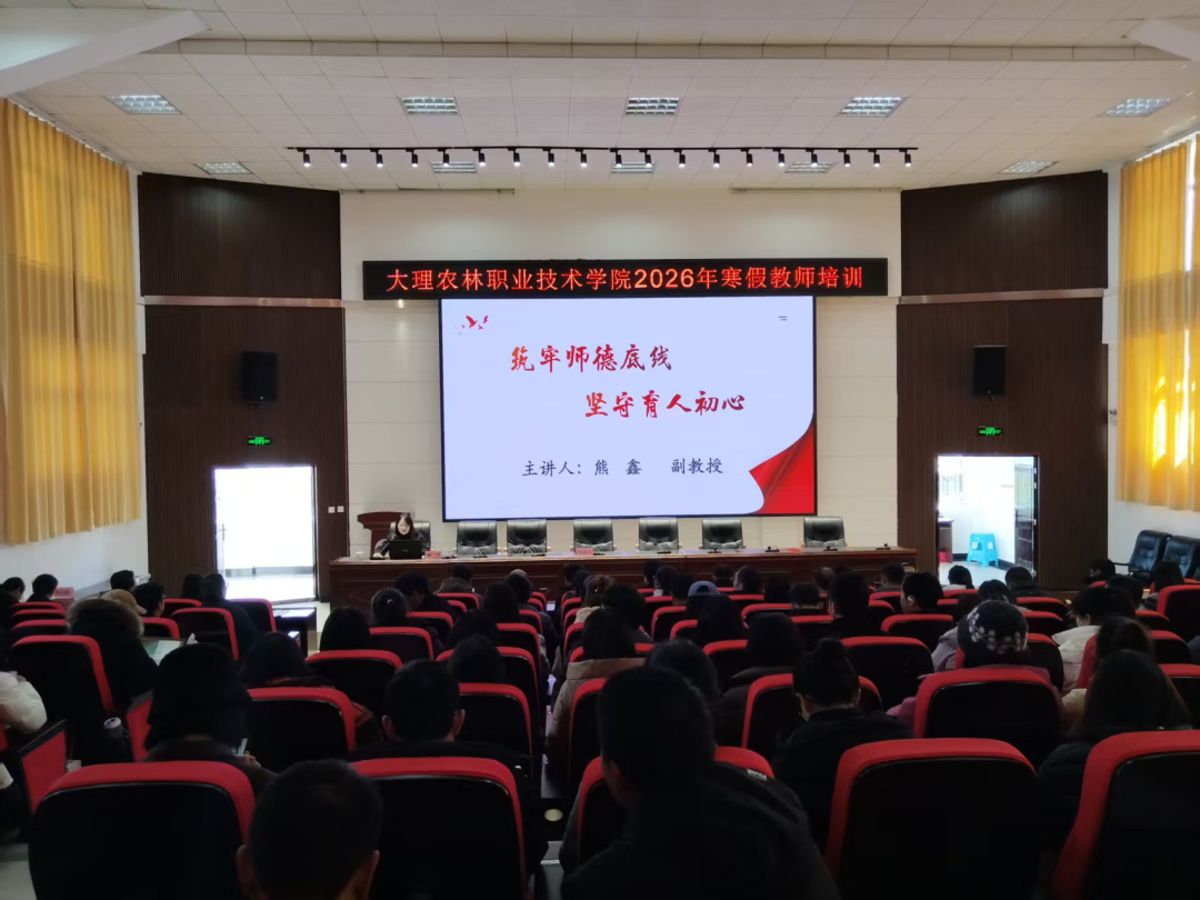 1月13日至15日,为进一步强化学校教师师德师风建设,推动人工智能技术与教育教学深度融合,提升教师专业素养与教学创新能力,大理农林职业技术学院组织全体教职员工开展为期三天的寒假专题培训。培训围绕“师德师风建设”“生成式大模型驱动教学”专题培训及实践演练、成果展示活动,以“师德铸魂+技术赋能”双轮驱动,助力教师队伍专业成长。