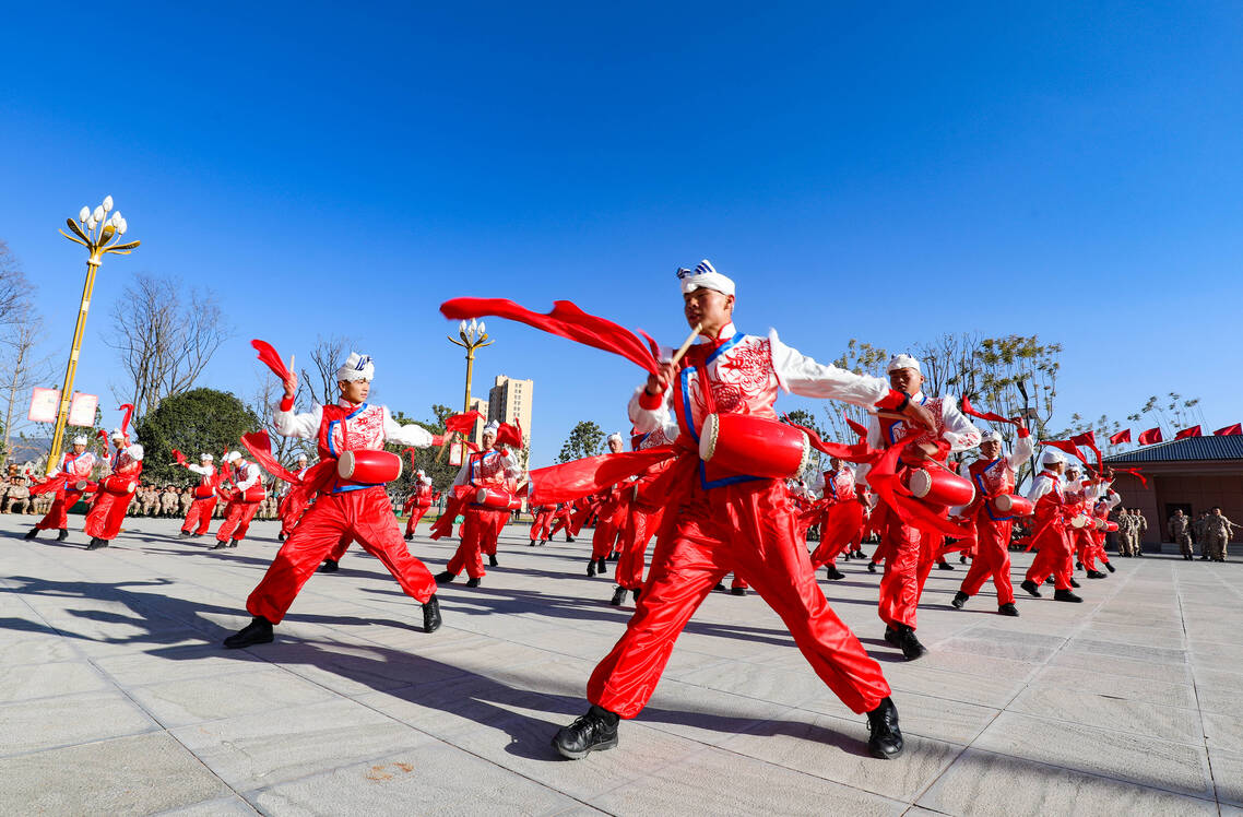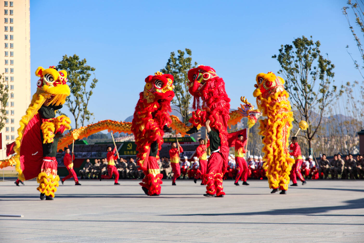 随后,家属们观看了特色文化队伍表演。大刀队表演刚劲有力,一招一式展露军人血性;陕西腰鼓尽显民族风情,氛围热烈震撼人心;舞龙舞狮气势如虹,龙腾狮跃力争上游。精彩的演出赢得家属们阵阵掌声,现场气氛热烈高涨。