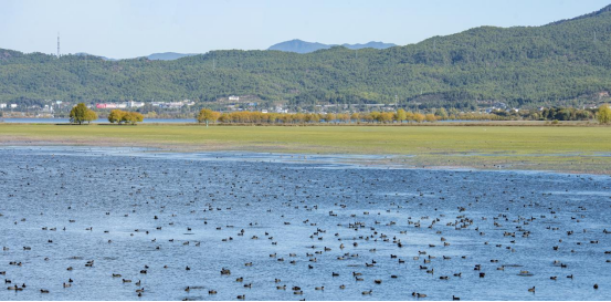 目前保护区内记录到鸟类达341种,其中国家重点保护鸟类69种,以冬候鸟为核心特色。每年冬季黑鹳、灰鹤、斑头秋沙鸭等珍稀鸟类翩跹而至,共同绘就“万鸟翔集,湖光山色”的生态盛景。在这里,你既能邂逅候鸟凌波起舞的灵动身姿,亦能沉浸式感受纳西文化与湿地生态交融的独特魅力。