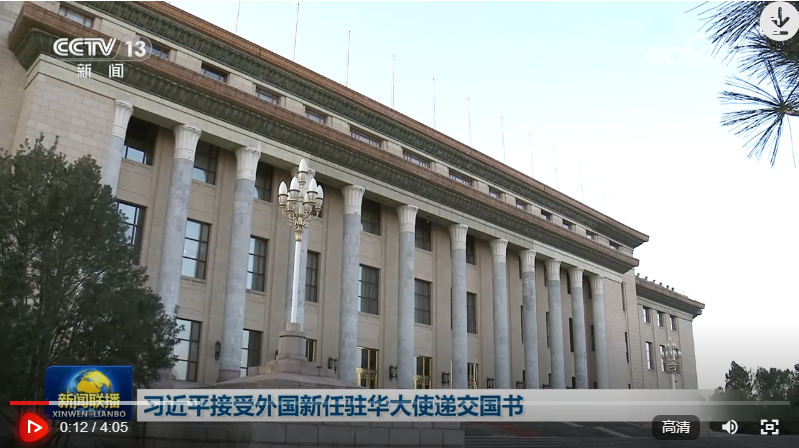 1月16日上午,国家主席习近平在北京人民大会堂接受18位驻华大使递交国书。