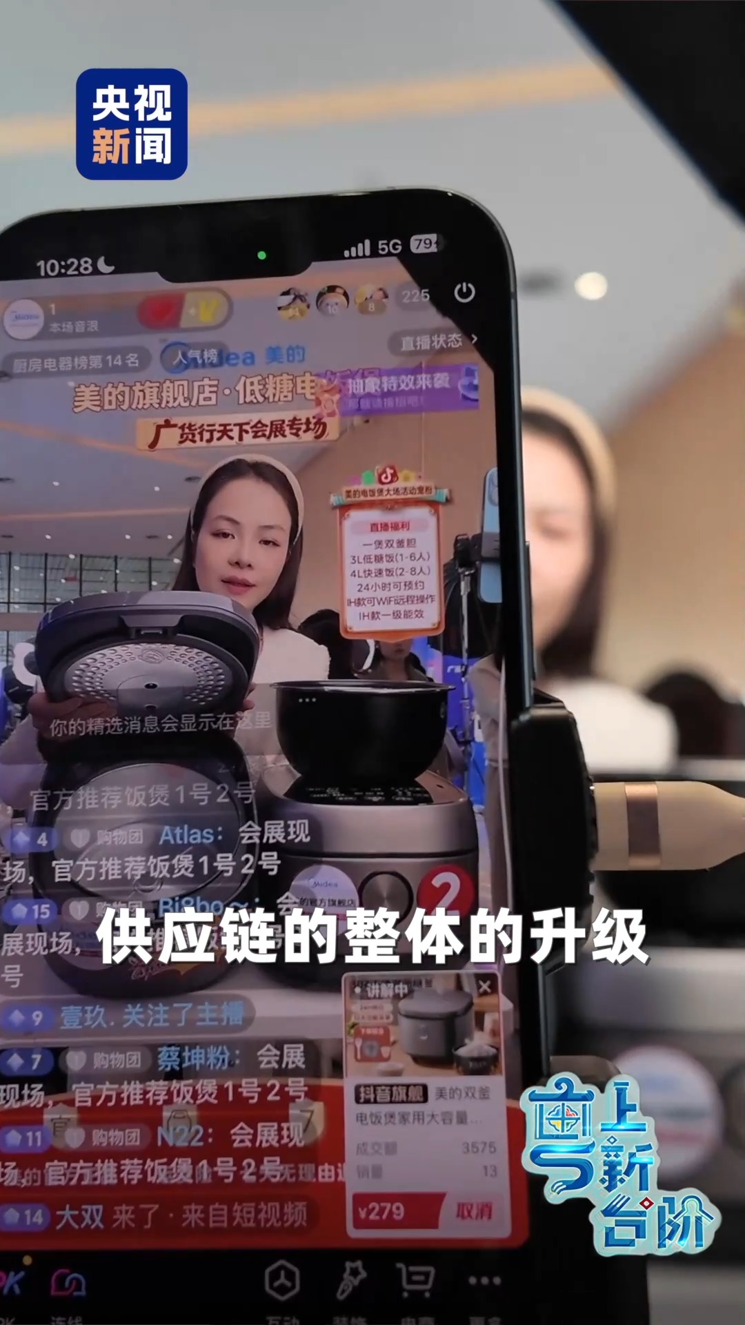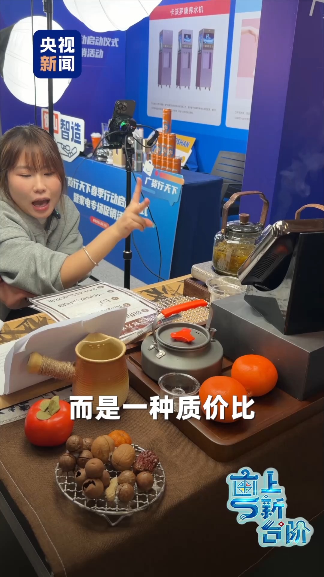 这次的活动现场,几乎看不到琳琅满目的产品陈列,取而代之的是一台台手机,一个个热闹的直播间。