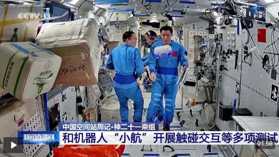 三名航天员和空间站里的老朋友——机器人“小航”进行“密切互动”,开展了触碰交互、自主飞行等多项测试,获取相关数据以优化后续在轨机器人运动行为规划方法。