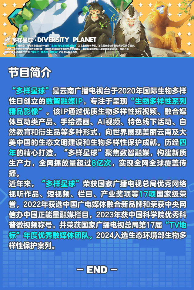 云南广播电视台“多样星球”数智融媒工作室、中国科学院昆明动物研究所联合出品