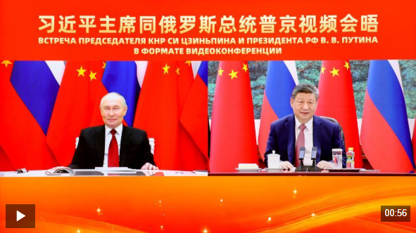 2月4日下午,国家主席习近平在北京人民大会堂同俄罗斯总统普京举行视频会晤。