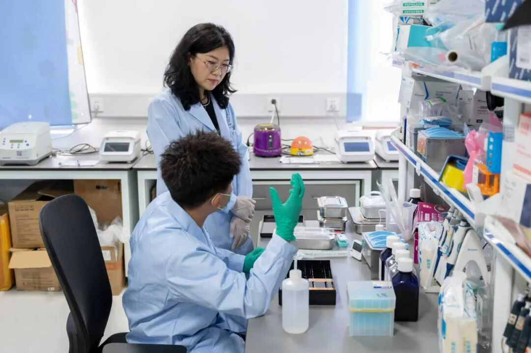 (于黎指导学生进行实验)