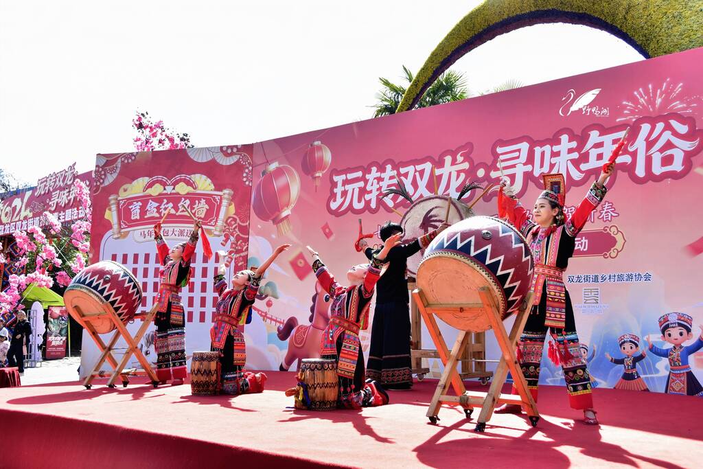 下午一点,精彩演出准时登场:以云南本土特色“打跳”拉开序幕,演员们手拉手围成圆圈,邀请游客共同参与,在欢快节奏中感受全民狂欢的喜悦;随后,多场民族歌舞表演接连呈现,舞步飞扬间尽显云南多彩风情,将马年新春的活力与喜庆推向高潮。