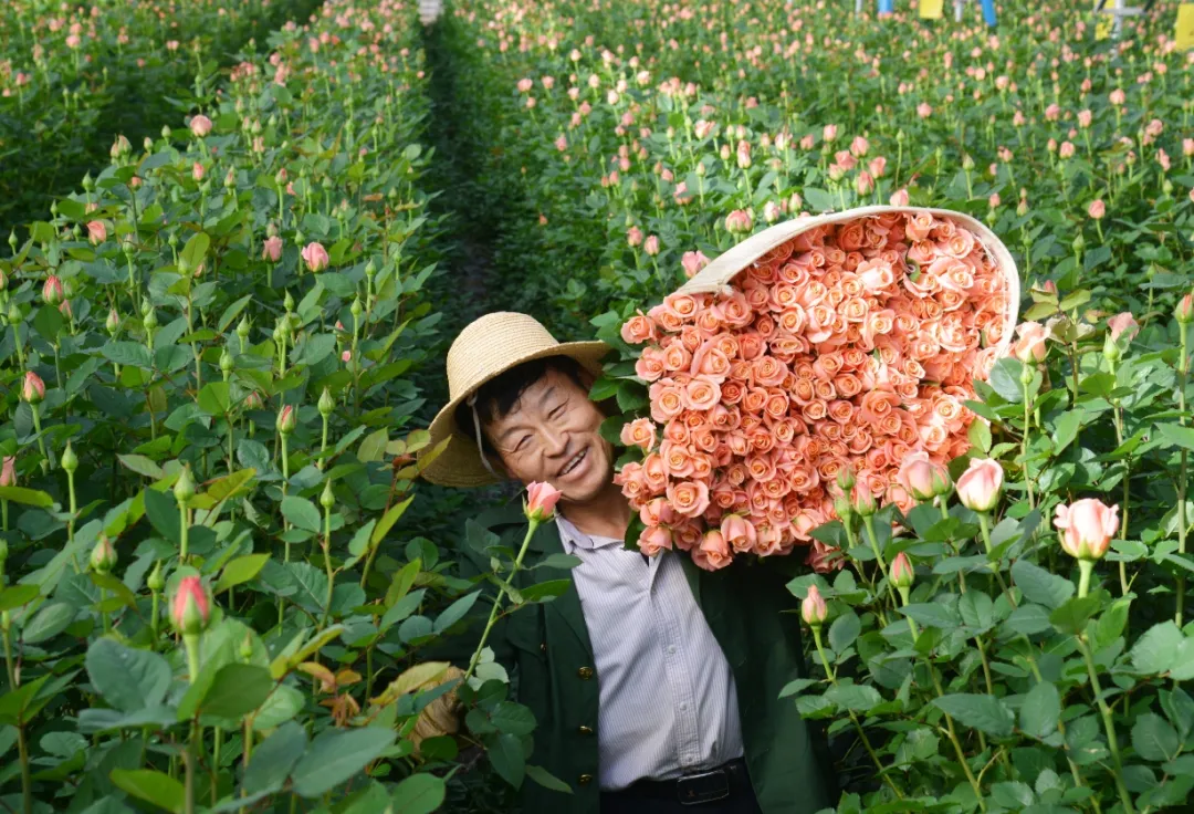 花农在昆明晋宁康龙花卉种植基地采收高品质的粉玫瑰。杨崇云摄