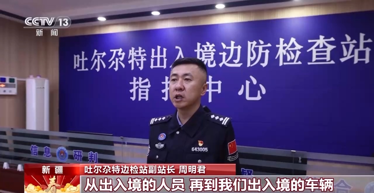 吐尔尕特边检站副站长周明君:这两年吐尔尕特口岸从出入境的人员,再到出入境的车辆,呈现了井喷式的增长。2025年我们全年通关的出境旅客达到28万人次,全年通关的出境车辆达到24万辆次。