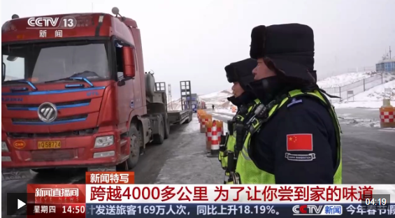 在国门口岸的出入境通道执勤,是罗中甫和战友们的日常工作。顶着刺骨的寒风,他和战友按照分工,认真地查验着每一辆来往车辆、核对每一名出入境人员信息。每天都有大量满载日用百货、机械设备、汽车及配件等“中国制造”的货车,经由这里驶向中亚市场。仅爬上爬下大货车这样的动作,边检民警一天就要重复几百次。就在记者现场采访时,一名司机突然向民警们挥手求援。