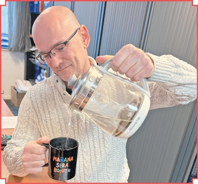 比利时友人阿尔诺·塔韦尼耶受到社交媒体上“成为中国人”热潮影响,开始喜欢上喝热水。