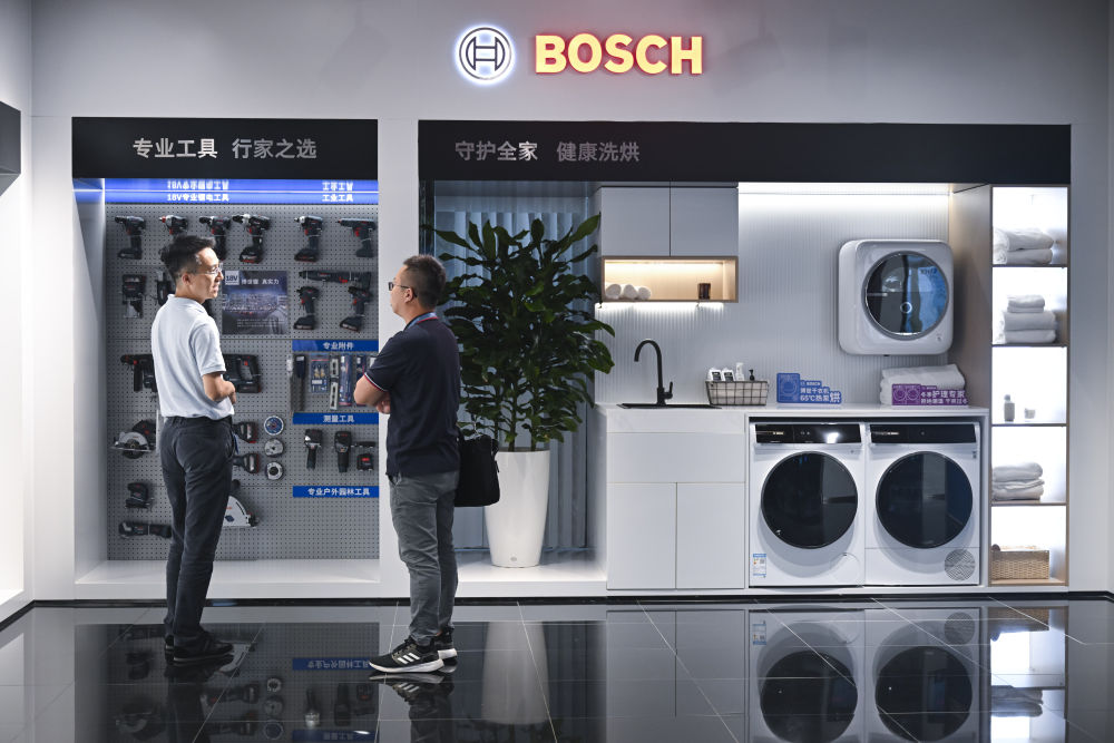 2025年9月10日,在上海虹桥临空经济示范区内的博世公司展厅,来访者在展品前交流。![]()