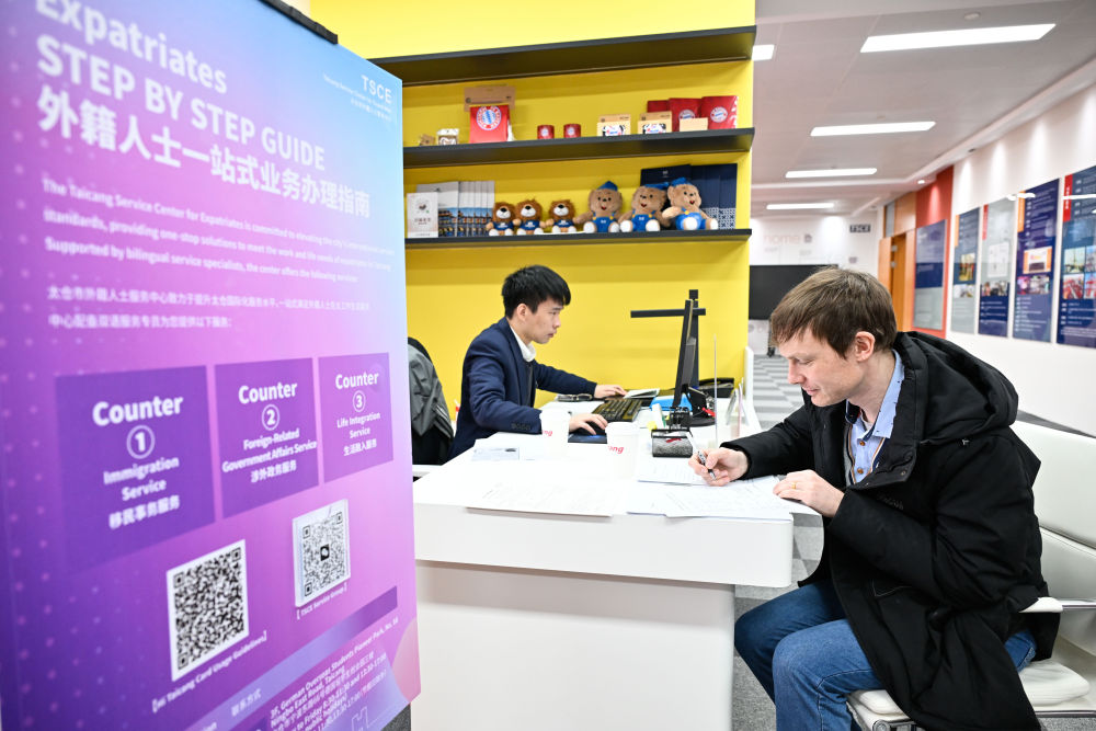2026年2月25日,在江苏省太仓市外籍人士服务中心,一名德企员工在办理业务。![]()