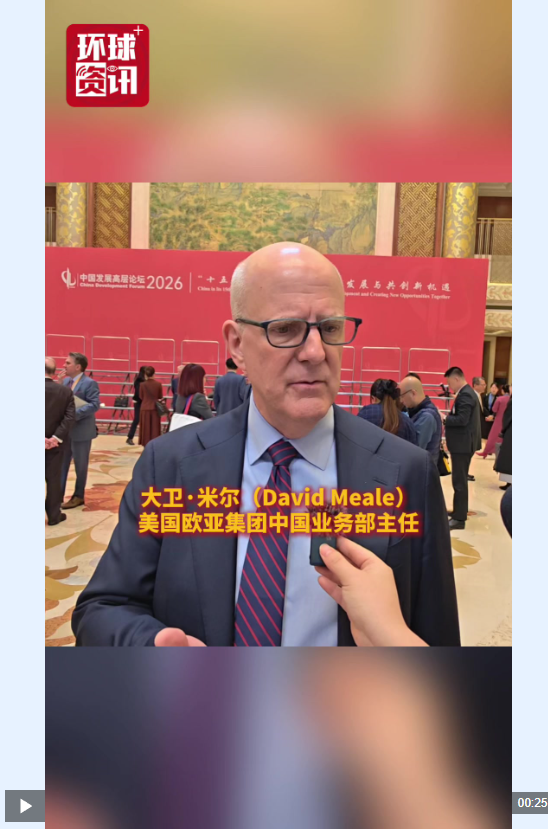 3月22日,在北京出席中国发展高层论坛2026年年会的美国欧亚集团中国业务部主任大卫·米尔接受总台环球资讯记者专访,他赞赏中国为促进全球稳定做出的努力,并表示中美近期在巴黎举行的经贸磋商具有建设性。