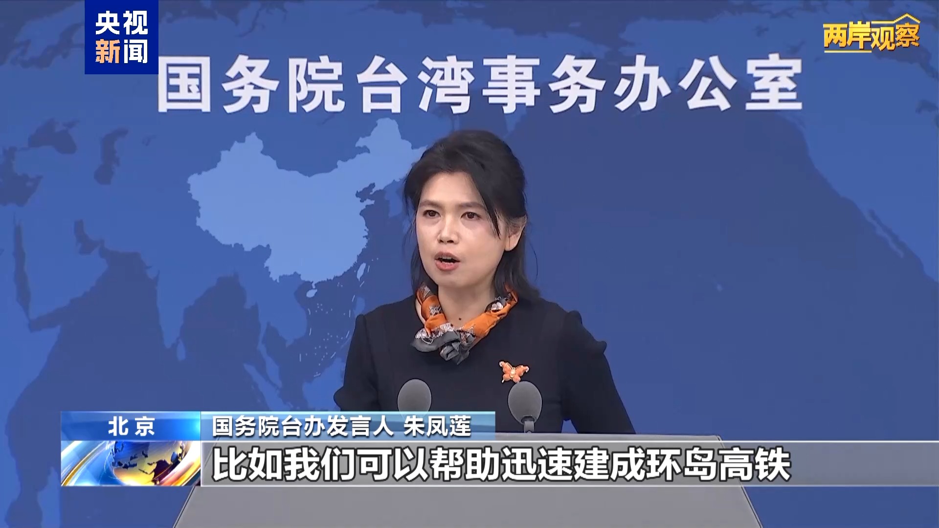 朱凤莲说:“比如我们可以帮助迅速建成环岛高铁,比如我们可以共同建设研究多年的海峡快速通道,让天堑变通途。台湾民众到时候就可以从本岛出发、沿京台高速自驾到北京来游览。总之和平统一将是台湾基础设施、新型基础设施焕然一新的起点。”