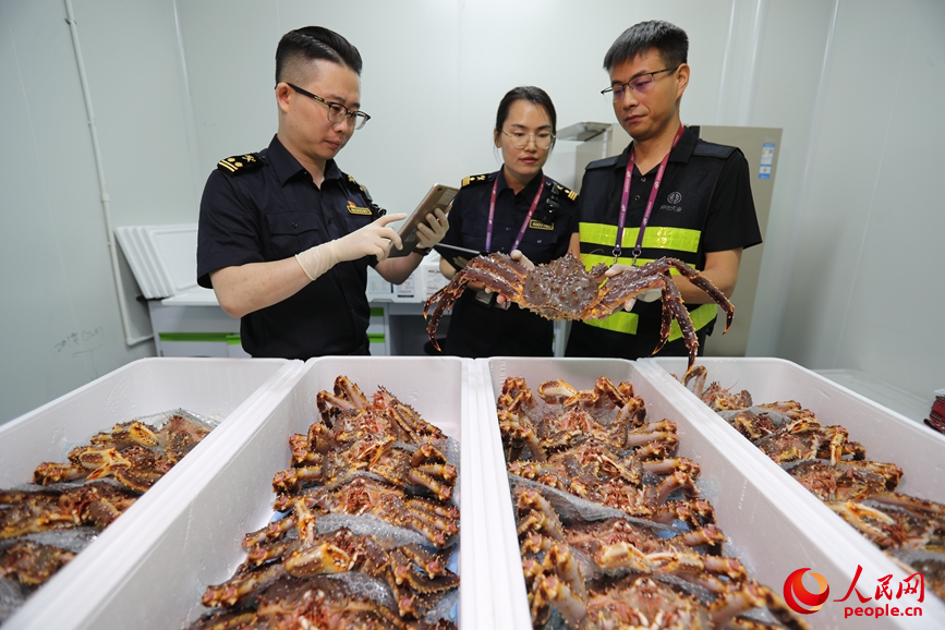 海关工作人员对货物进行查验。人民网记者霍亚平摄