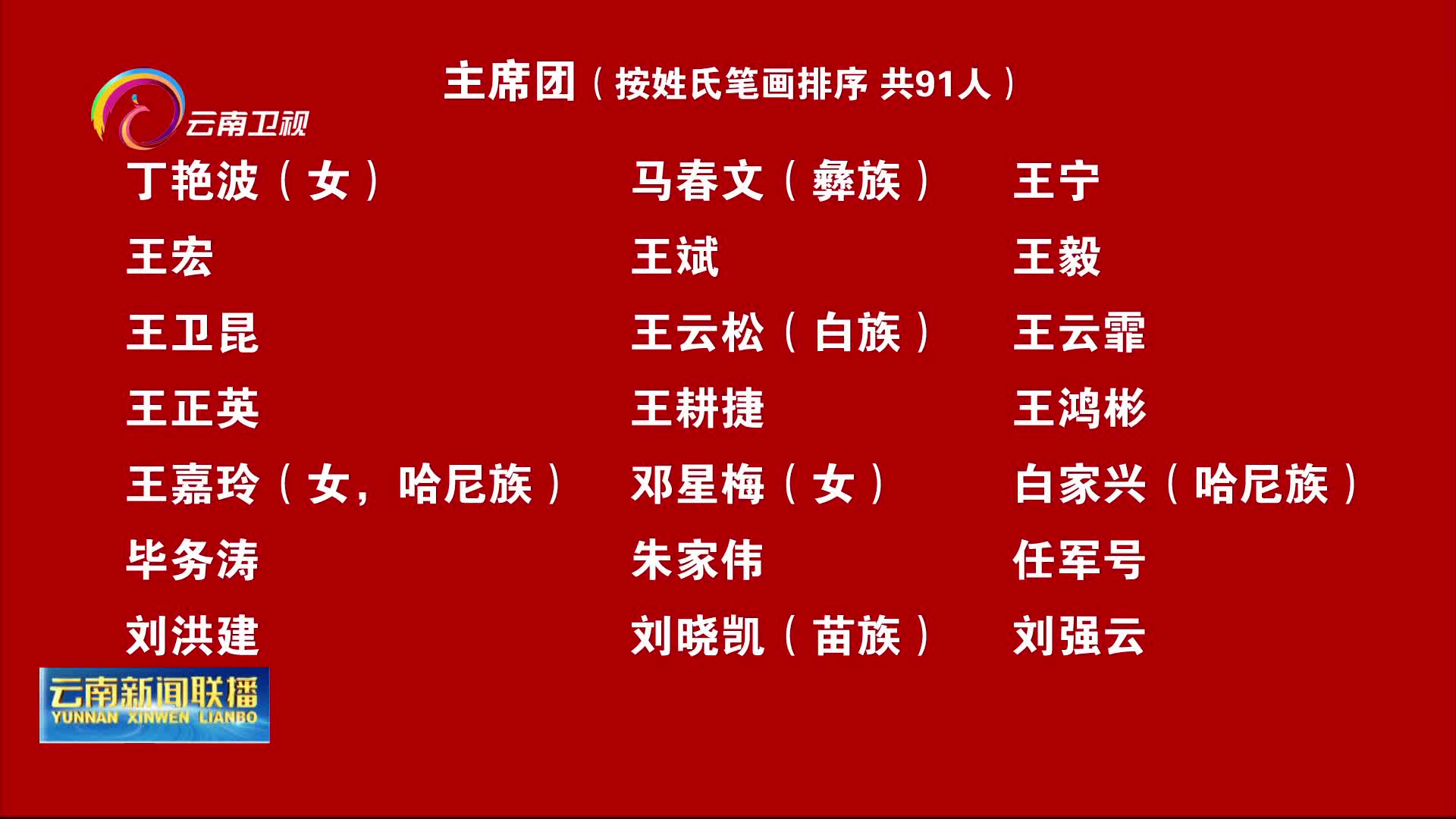 【聚焦2026云南省两会】省十四届人大四次会议主席团常务主席名单